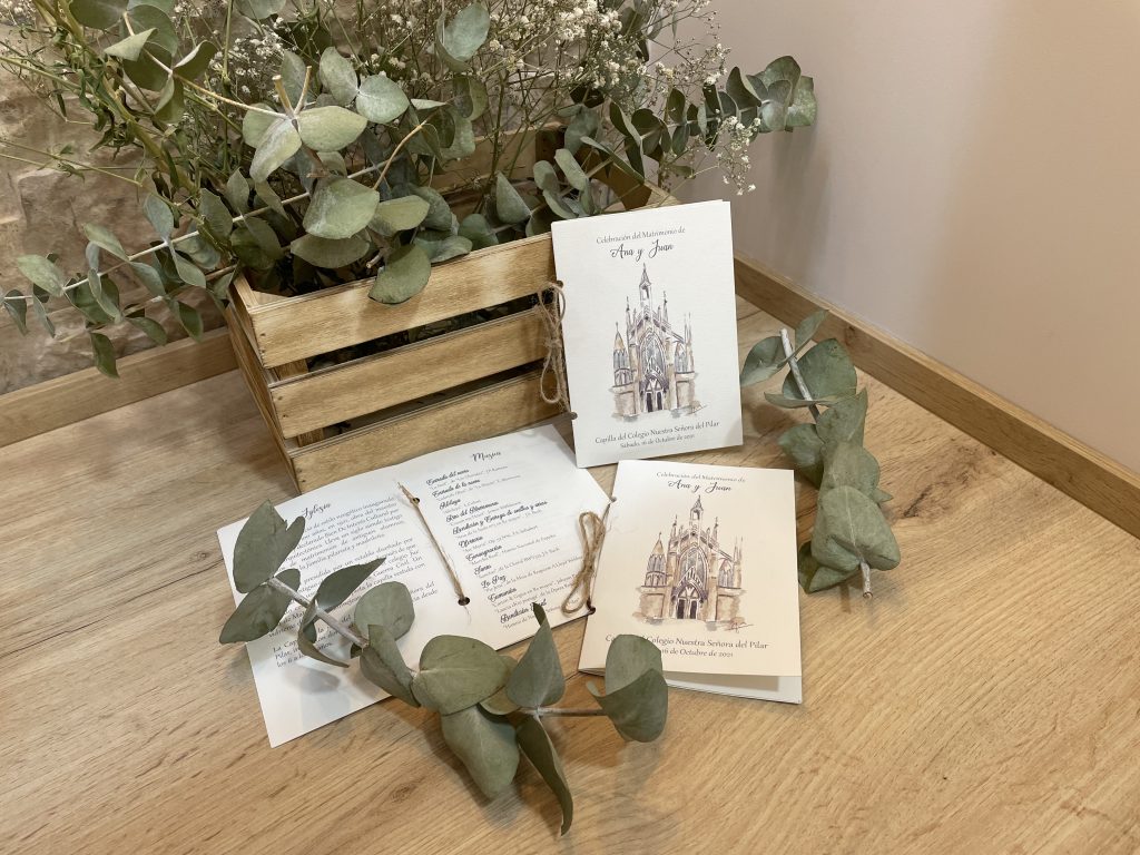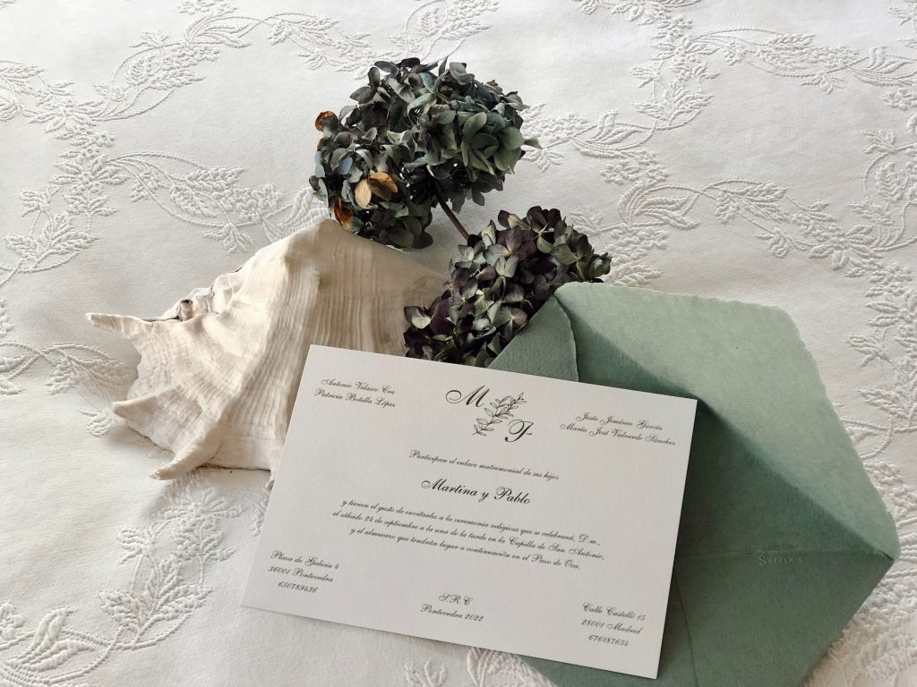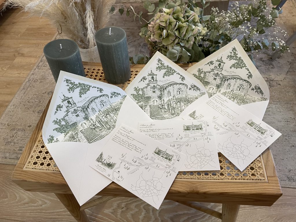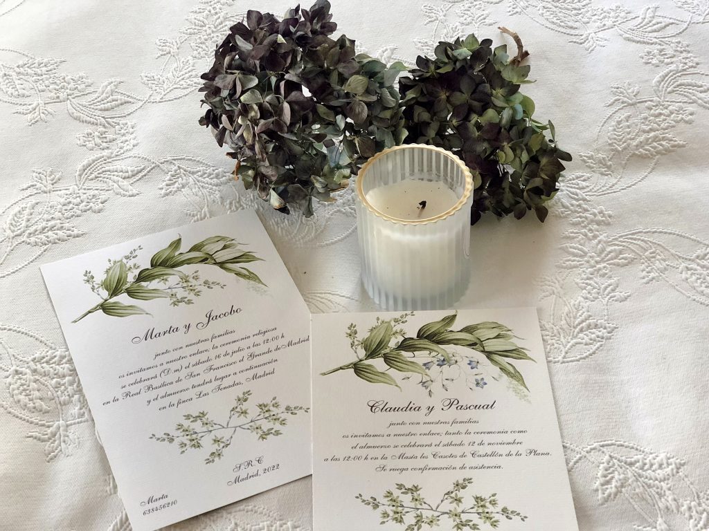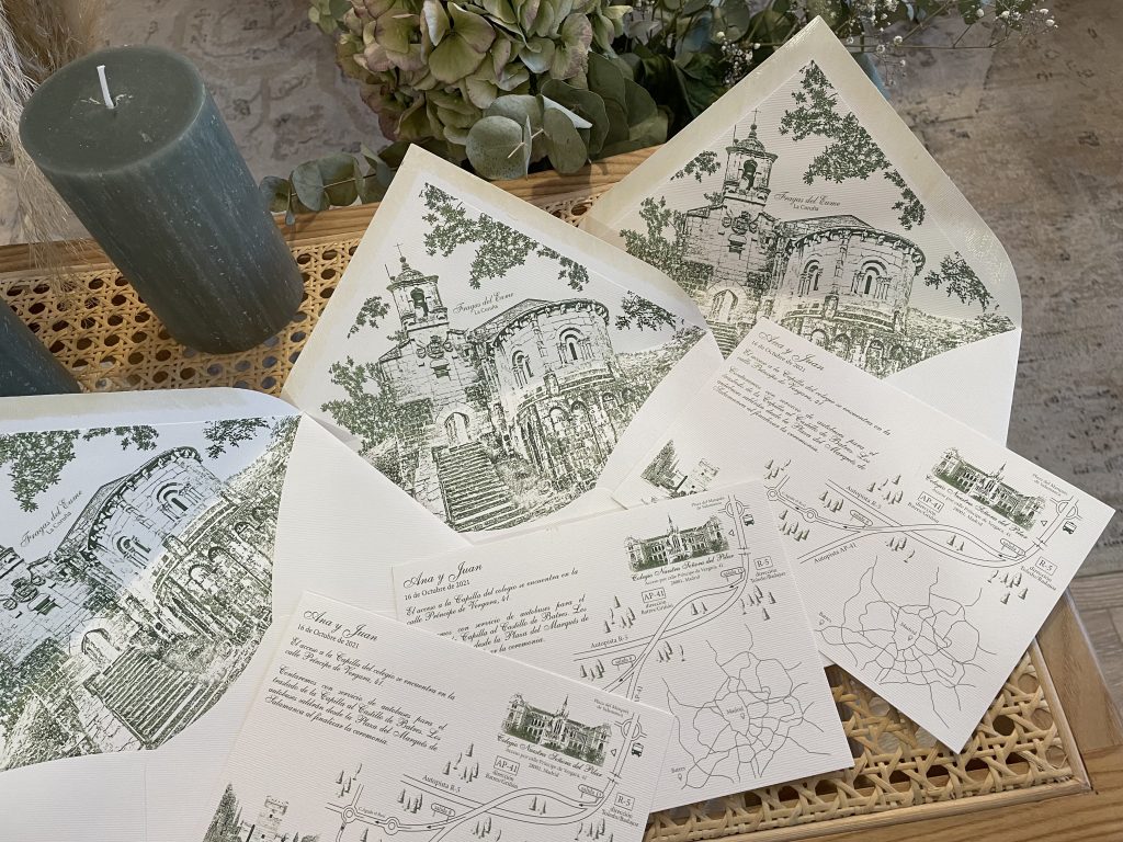 Las invitaciones son únicas, no trabajamos con plantillas ni modelos predeterminados. Todas tienen un diseño diferente y adaptado a las necesidades de sus clientes. Intentamos combinar la solemnidad y la elegancia de las invitaciones clásicas, con las posibilidades que les otorga la personalización. Detrás de cada una de las invitaciones, hay un bonito proceso que parte de las ideas de los novios, recorriendo el camino junto a ellos hasta obtener el resultado final.